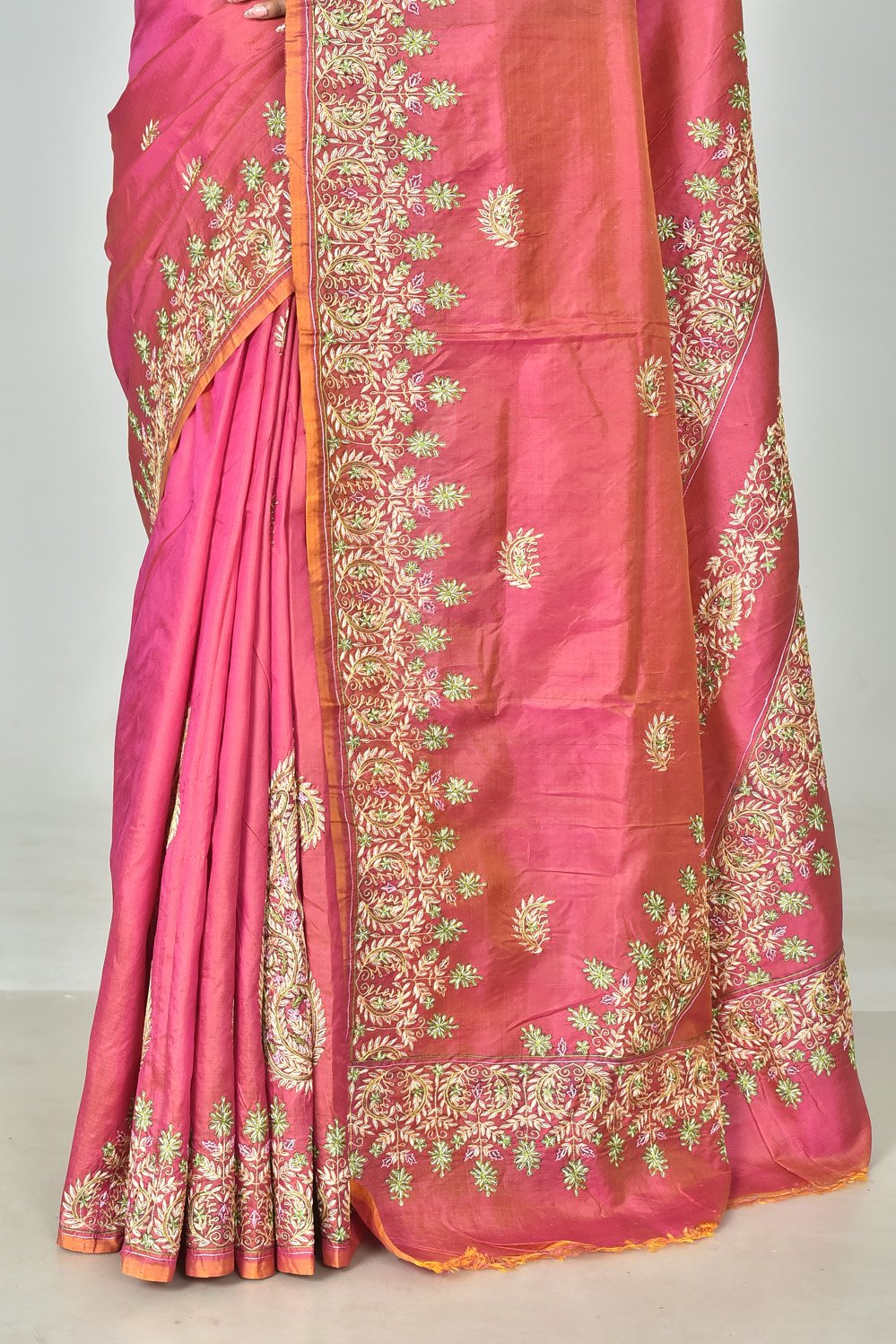 Bisnupuri dual tone silk saree with Blouse piece kashmiri stich