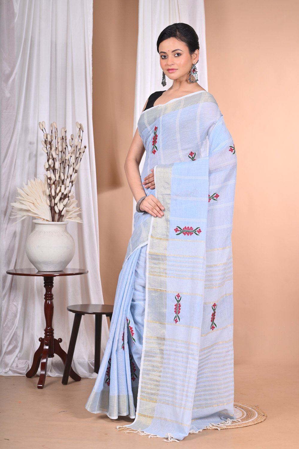 A saree that speaks fluent tradition—with a handcrafted accent.