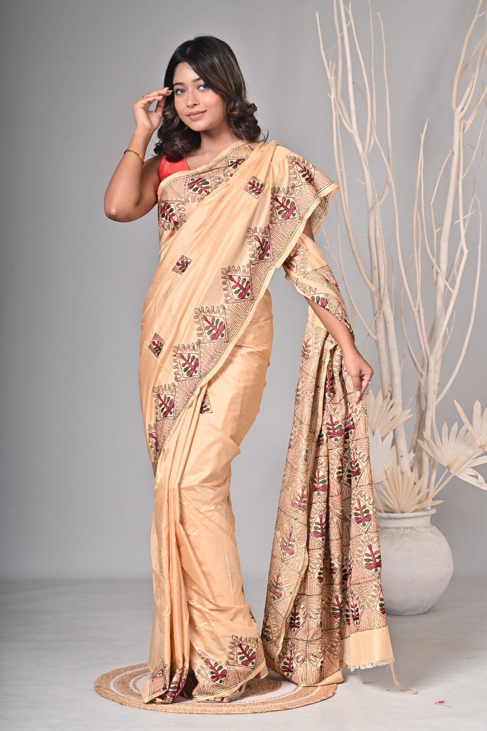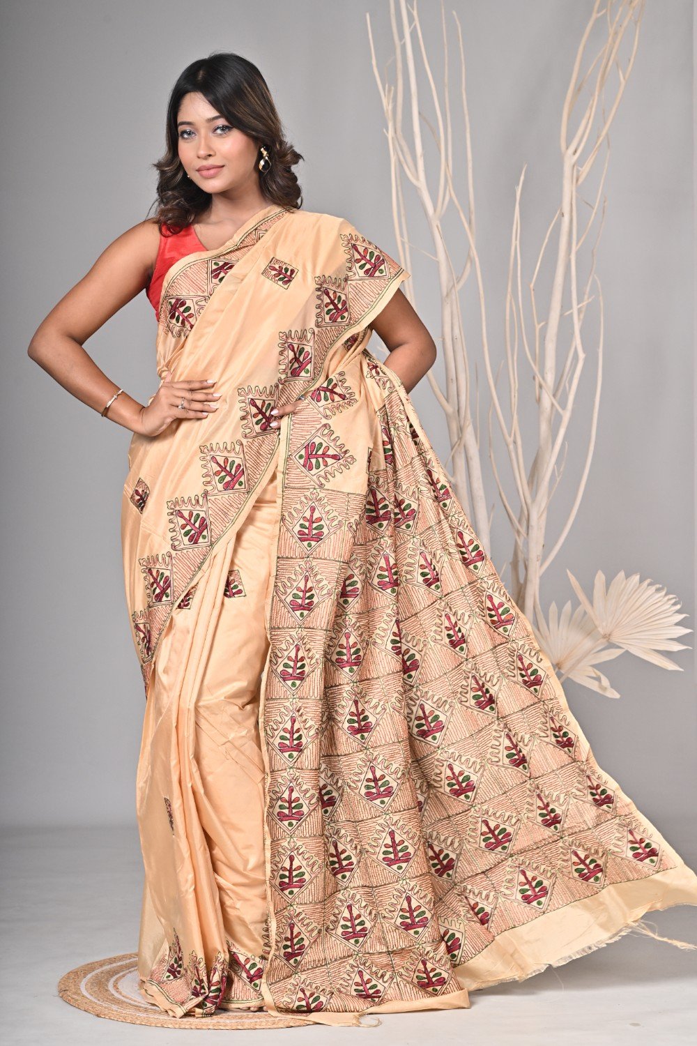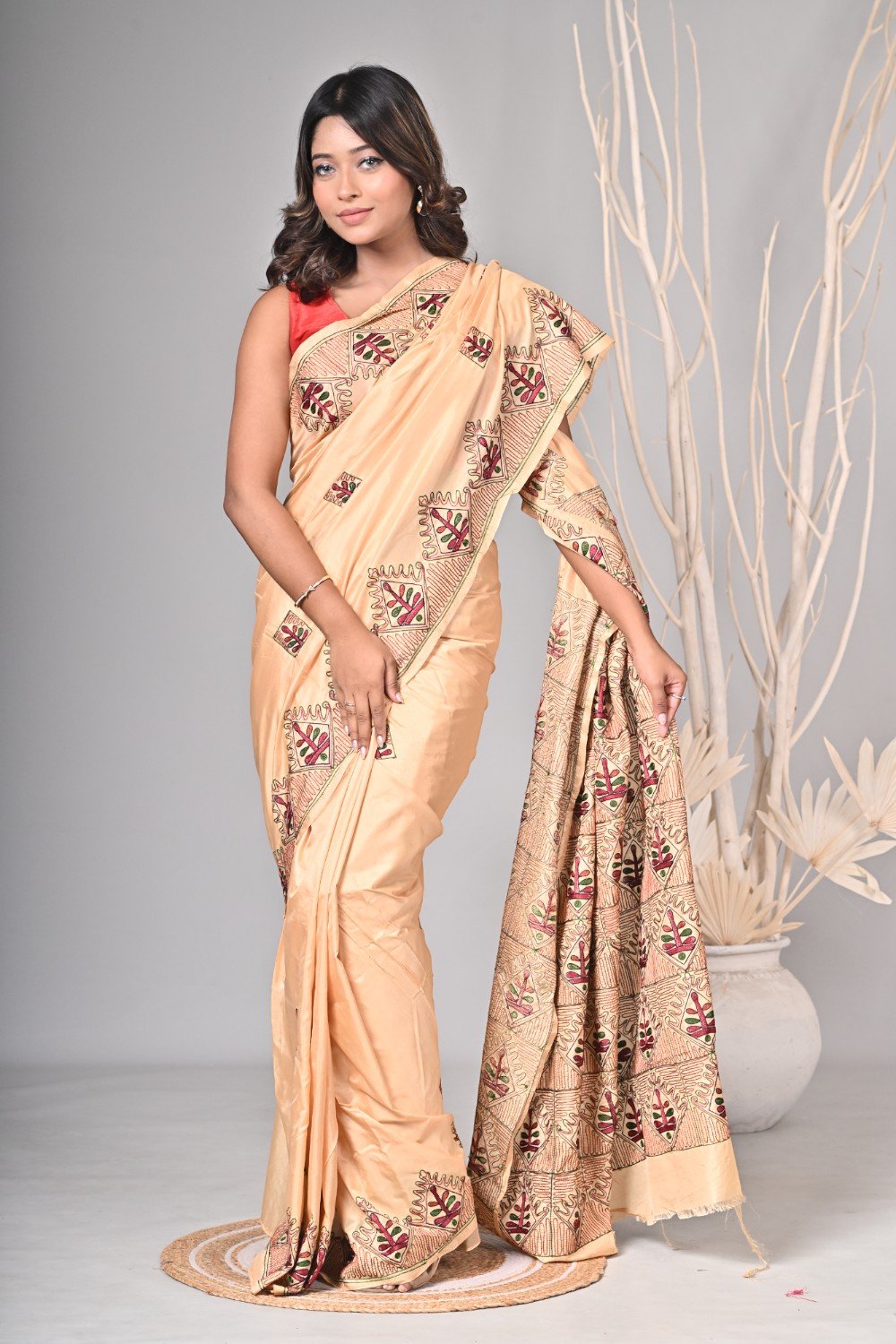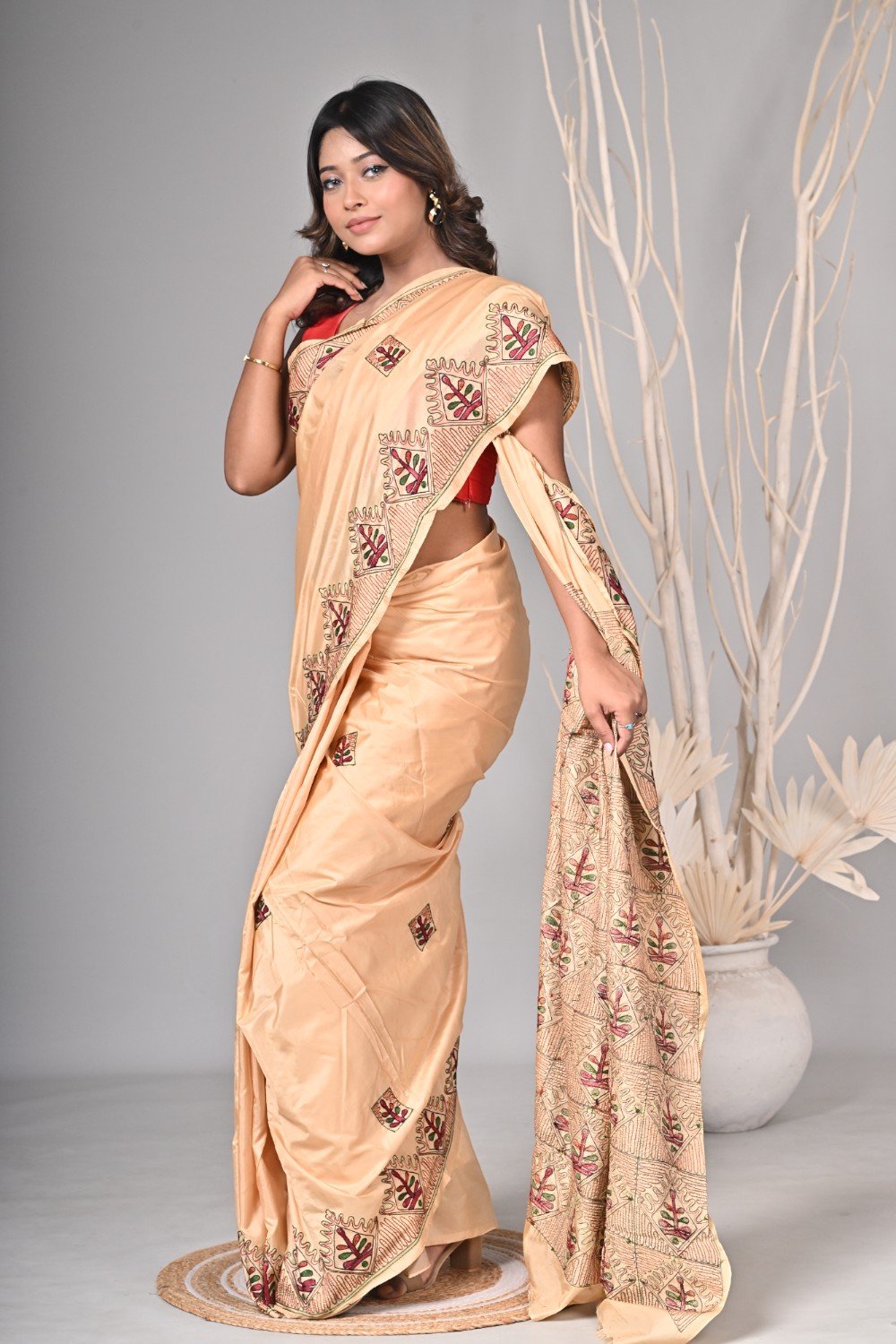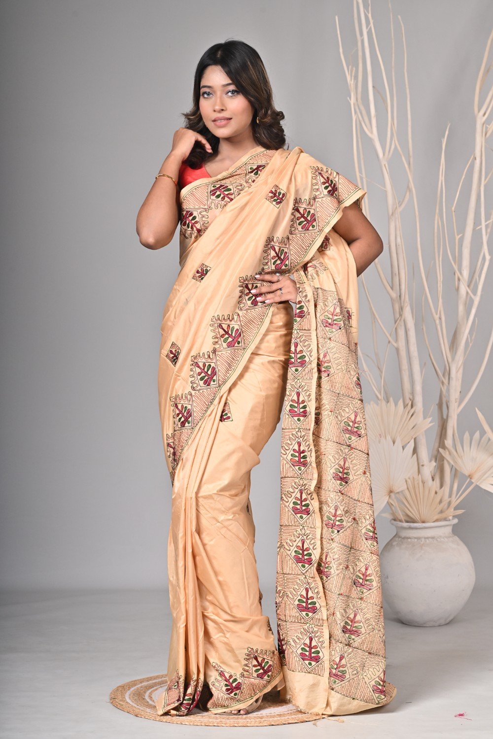 Silky Silk Kashmiri Hand Embroidery Saree with Blouse Piece